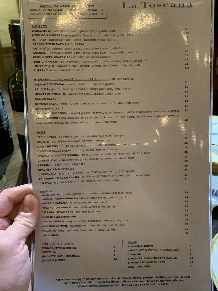 La Toscana, an Italian restaurant located in San Rafael, CA, offers a wide range of options for diners, including vegetarian choices and wheelchair accessibility. With a full bar and outdoor seating, it's perfect for a casual night out. The menu features delicious Antipasti like Arancini and Bruschetta, as well as refreshing Insalate options such as the Arugula Salad. Kids are also catered for with dishes like Kids Chicken & Fries and Spaghetti & Meatball. The restaurant's commitment to sustainability is evident with compostable containers and plastic-free packaging. Overall, La Toscana provides a welcoming atmosphere and a delectable dining experience for all.
